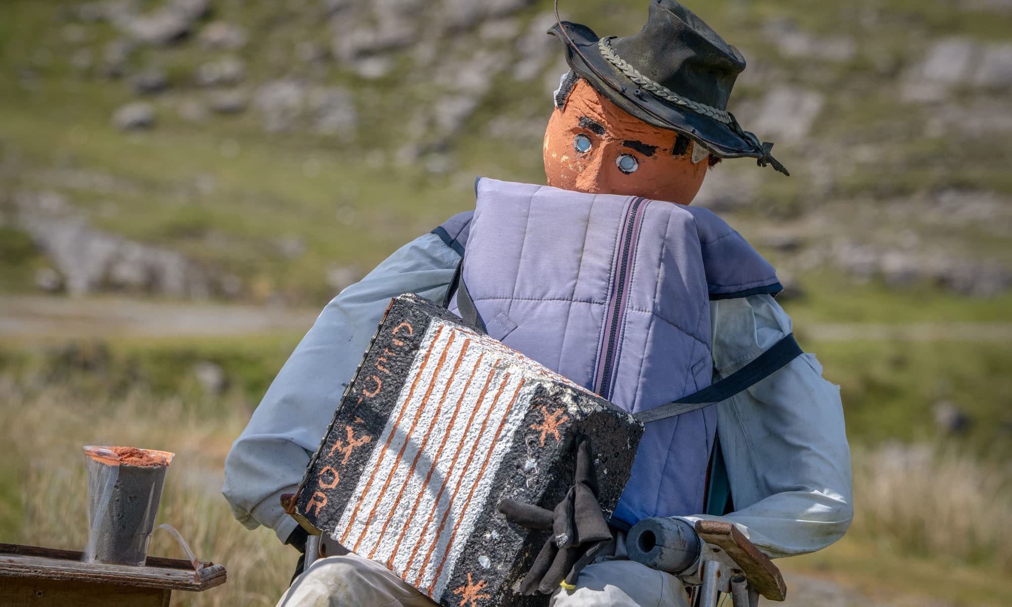 While on the beach of Uig, I crossed this accordion player, made of odds and ends. He was seated in the company of a paper singer and a bagpipe ringer of whom only the hands and the instrument remain.