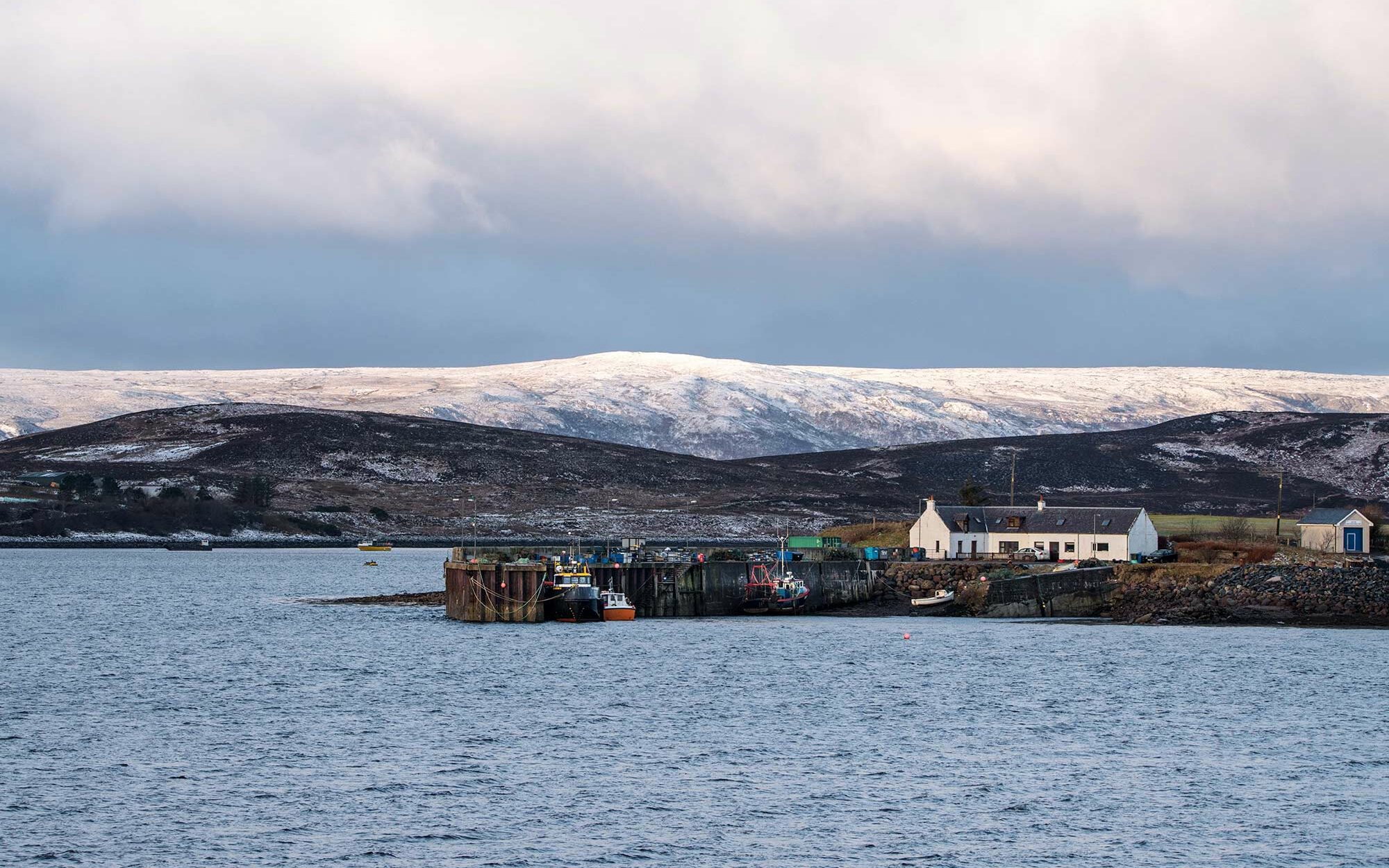 When I came to Aultbea from Torridon, I did not know where to set my eyes, or rather, I kept looking all over the place, I was surrounded on all sides. In front of me, Loch Ewe, a large loch that opens onto the sea. In the centre of the loch, the island of Ewe can be seen. It is the first hill behind the small fishing port. Behind, the mountains that border the Loch, including An Cuaidh which culminate at 296 m. On my back, it’s the same. The snowy peaks follow one another with incredible regularity: Beinn Alligin, Beinn Eighe, Slioch, An Teallach. Some peak at more than 1000 meters, while they are a few kilometres from the sea ! In winter, the weather conditions are difficult, but in the summer, I’m sure you can enjoy fantastic hikes !