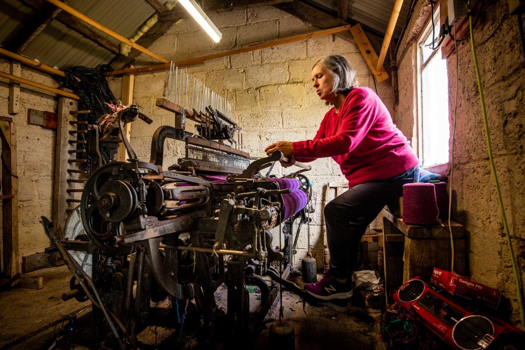 While driving around the village of Shawbost, I noticed sheds in the gardens of many houses. These are the weavers’ workshops that make the Harris Tweed. The manufacture of this fabric is regulated by the law. Harris Tweed is to be woven at home, only in the Outer Hebrides Archipelago, with local wool. Catherine and her husband are English. In search of a life in the wild, they fell under Lewis’ spell. This is where they learned to weave. It’s a physically demanding job, as I’ve seen. The looms (machines) only work with the strength of the calves. Catherine’s tool is a hundred years old. Some weavers work with the companies of the archipelago. Others like Catherine, sell their Harris Tweed directly. If you go through Shawbost, do not hesitate to visit her, she will talk to you about her work with pleasure!