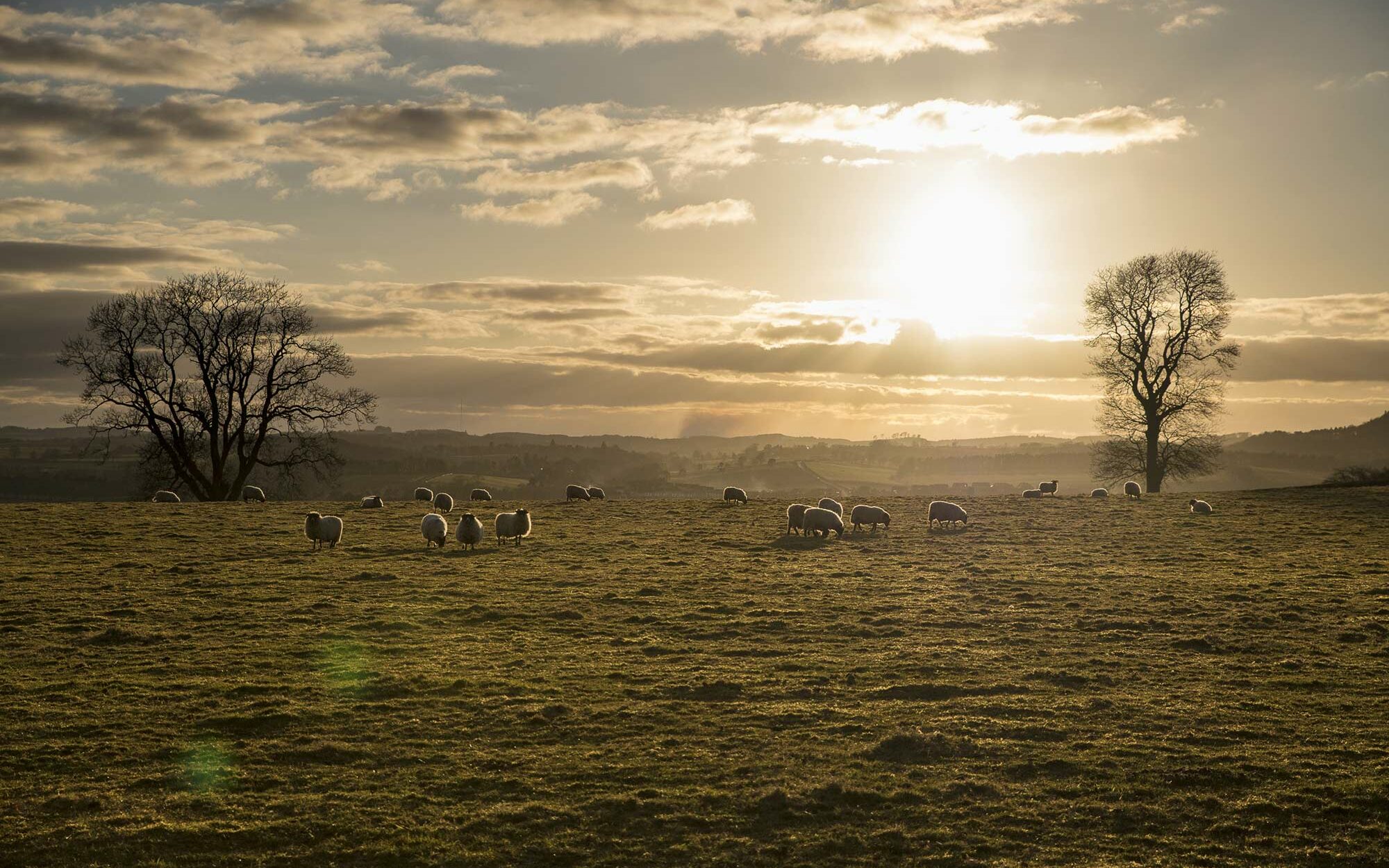 L’Écosse est une grande terre d’élevage. Dans certaines régions, il y a plus de moutons que d’habitants ! Dans le sud de l’Écosse, c’est là que l’élevage est le plus important. Mais on trouve aussi beaucoup de moutons dans les Highlands. En passant, on les voit se promener et se nourrir dans d’immenses champs. Pendant que je marchais, certains moutons ont relevé la tête pour me regarder. D’autres n’ont jamais su que j’étais là, ils étaient trop occupés à manger ! Je suis resté à bonne distance, histoire de ne pas les effrayer. Un mouton qui a peur, c’est tout le troupeau qui est capable de s’en aller. Là, homme et bêtes profitent tranquillement du magnifique soleil couchant.