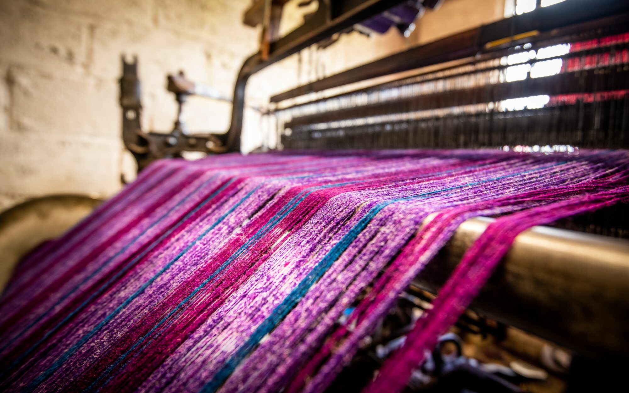 J’vous explique. Le tweed de Harris est fabriqué par les habitants de l’île, à leur domicile, et uniquement à la force des mollets. C’est fou, non ? Les métiers à tisser ne sont pas du tout mécanisés. Et pour les faire marcher, il faut appuyer sur des pédales avec ses pieds.
